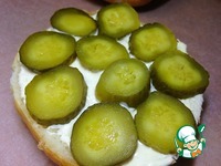 На обе половинки булочки намазать соус и выложить порезанные кружочки огурцов. |