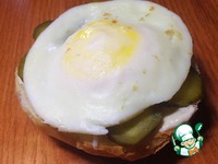 Пожарим с двух сторон яйцо или омлет. Можно это сделать в кулинарном кольце или просто на сковороде, придав потом нужную форму по размеру булочки. |