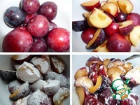 Сливу нарезать четвертинками, пересыпать крахмалом, перемешать. |