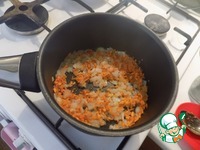 Лук золотим, выкладываем морковь. Обжариваем всё до готовности. |