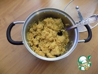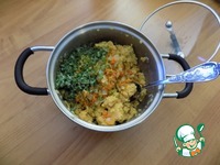 Содержимое сотейника отправляем в чечевицу. Туда же-резанную петрушку и перемешиваем. |