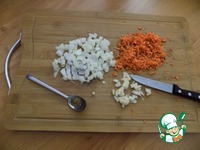 Лук очень мелко режем и чеснок тоже. Морковь натираем на тёрке. |
