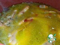 Снять с огня и добавить креветки, перемешать. Оставить кастрюлю открытой на 15 мин и можно подавать к столу. |
