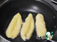 Обмакиваем каждый огуречный брусок в кляр и выкладываем на горячую сковороду с маслом. Обжариваем с двух сторон до румяной корочки. |
