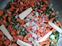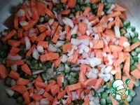 Морковь нарезать произвольно, добавить к гороху. |