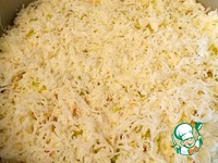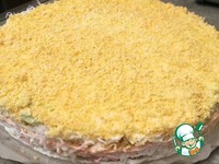 Яйца разделить на белки и желтки. Натереть белки на мелкой терке и выложить следующим слоем. |