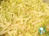 Мелко нашинковать салат Айсберг и выложить на икру и смазать майонезом. Если нет Айсберга, то можно использовать очень мелко порезанную кубиком и размятую руками белокочанную капусту. |