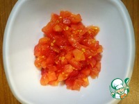 Помидор так же нарезать мелко, слить лишнюю жидкость. |