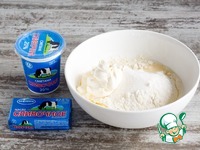 Для теста смешайте 150 г масла, муку, яйцо, соль, соду, разрыхлитель, 2 ст. л. сахара, 2 ст. л. молока и сметану. Скатайте тесто в шар, заверните в пищевую пленку и оставьте в холодильнике на 30 мин. |