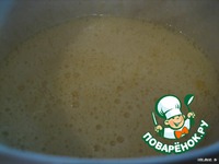 На противень выливаем 1/2 части массы манки, выкладываем порезанные на произвольные дольки груши и заливаем оставшейся массой манки. |