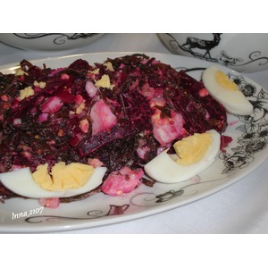 Свеклу вымыть и запечь или отварить до готовности. Яйца сварить и очистить. |
