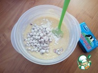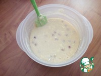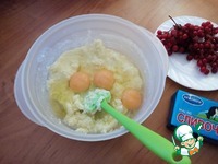 Муку понемногу вмешала в смесь и выложила ягоды калины в муке. Опять аккуратно их распределила по тесту, стараясь не давить. |