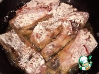 Рыбу обжариваем со всех сторон на среднем огне до золотистого цвета. |