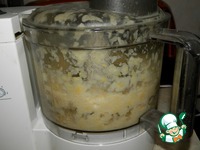 А вот сейчас главный момент – добавить в приготовленную массу 2 стакана (без верха, стакан 200-граммовый) штрейзельной крошки и осторожно перемешать ложкой. |