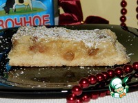 Готовый пирог остудить, нарезать на пирожные и присыпать сахарной пудрой. |