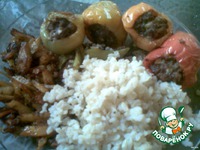 Описание: Фаршированные перцы - вроде ничем уже не удивишь, я сделала акцент на начинке. Получилось сочно, нежно, тает во рту. Из оставшейся начинки сделала котлетки тоже в аэрогриле.