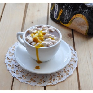 Наливаем горячий шоколад в кружку, сверху посыпаем маршмеллоу и поливаем пряным тыквенным сиропом. Приятного аппетита! |