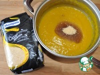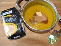 Пробиваем тыкву в пюре блендером, добавляем коричневый сахар. У меня сахар Демерара "Мистраль". |
