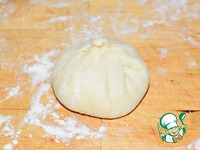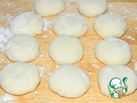 На рабочую поверхность, присыпанную мукой, выложить подошедшее тесто, обмять его и разделить на 11-12 равных частей (по 45-50 г) |