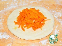 Начинка. Пока тесто подходит, приготовить начинку. Морковь натереть на крупной терке и обжарить ее в растительном масле до мягкости. Посолить по вкусу, остудить. |