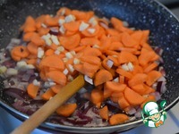 Обжарим овощи на подсолнечном масле. Добавим 60 мл воды и потушим, прикрыв крышкой. Тушим до готовности моркови. |