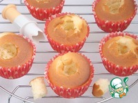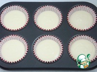 Вкладыши для кексов выложить в форму для выпечки кексов. Заполнить их тестом наполовину. |