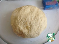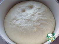 Добавить 2 ст. л. растопленного сливочного масла, молоко, соль и 3 стакана муки, замесить тесто. |
