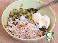 Маринованные хрустящие огурчики мелко режу. |