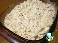 Посыпать сверху пирог штрейзелем. Поставить в разогретую духовку. |