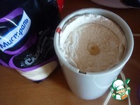Тесто разделить на 2 части. В одну из них добавить черёмуховую муку и сливки. |