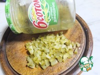 Пока тесто подходит, огурец "6 соток" мелко нарезаем. |