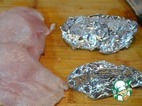 Сделайте заготовки из фольги, на которых мы будем запекать грудки. |