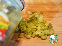 Я в своих блюдах использую маринованные огурчики "6 СОТОК". Огурчики этой фирмы очень вкусные, хрустящие, кроме того, они приготовлены с пониженным содержанием уксуса. |