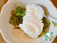 К огурцам добавить сметану, зубчик чеснока, посолить. Перемешать. |