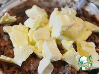 Затем масло и коньяк (1 ст. л.). Хорошо перемешайте. |