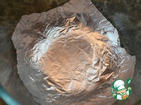 Форму для выпечки смажьте маслом. На дно положите кусочек фольги. |