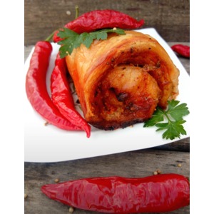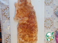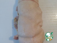 Также тщательно втираем маринад и сворачиваем подчеревок в рулет. Оба варианта убираем на ночь в холодильник. |