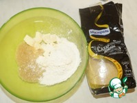 Сначала нужно приготовить штрейзель. Для этого в чашу выложить муку, сахар и сливочное масло. |