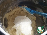 Добавить сливочное масло в горячий крем и взбить миксером. Накрыть пищевой пленкой (в контакт с кремом) и оставить остывать до комнатной температуры. |