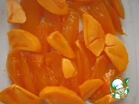 Хурму очистить, нарезать ломтиками, выложить в форму для запекания. Хурму лучше брать невяжущего сорта, без косточек. |