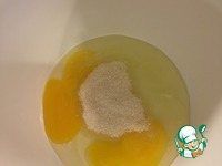 Вбиваем в миску два яйца, добавляем две столовые ложки сахара и взбиваем одну минуту до пышной массы. Затем добавляем растительное масло и сгущенку. Взбиваем. |