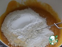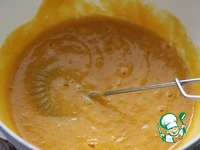 Тыквенную массу вылить в муку (у меня наоборот получилось, зарапортовалась))), размешать лопаткой или миксером до однородности. |