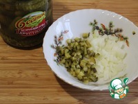 Лосось, лук и корнишоны залить заправкой, перемешать. Закрыть и убрать в холодильник на сутки. |