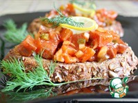 Выкладываем салат на хлеб, украшаем и подаем. Приятного аппетита! |