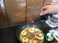 По готовности лука, выкладываем креветки на лук и обжариваем по 2 минуты с каждой стороны |