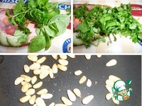 Петрушку и базилик измельчить. Орешки слегка поджарить на сухой сковороде. |