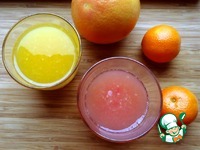 Из мандаринов и грейпфрута выжать сок. Сока из мандаринов получилось примерно 220 мл, а из грейпфрута около 150 мл. |