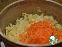 Режем мелко лук, трем на крупной терке морковь и добавляем к капусте, перемешиваем, тушим еще 30 минут |