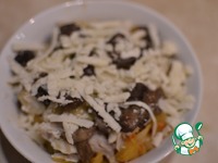 Посыпаем натертым на крупной терке сыром и ставим в предварительно разогретую до 200 град. духовку на 15-20 минут- за это время все ингредиенты "подружаться" и сыр подрумяниться |