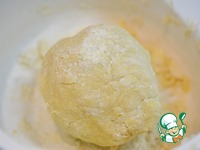 Добавить желток, соль и воду. Замесить тесто, скатать в шар и убрать в холодильник на 1 час. |